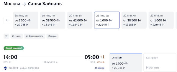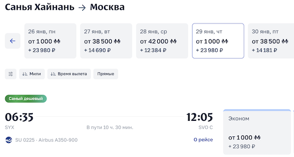 Москва — Хайнань — Москва 2.000 миль и 46.900 рублей