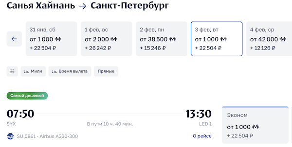 Санкт-Петербург — Хайнань — Санкт-Петербург 2.000 миль и 43.900 рублей