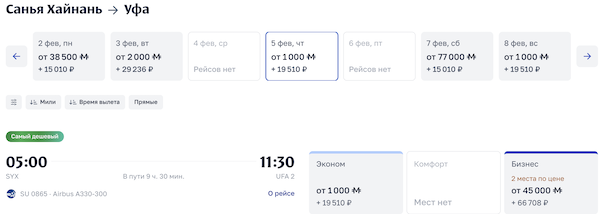 Уфа — Хайнань — Уфа 2.000 миль и 37.900 рублей