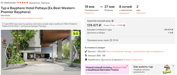 Bayphere Hotel Pattaya с завтраками 87.200 рублей за человека (174.500 рублей за двоих)