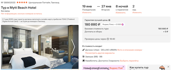 Mytt Beach Hotel с завтраками 90.400 рублей за человека (180.900 рублей за двоих)