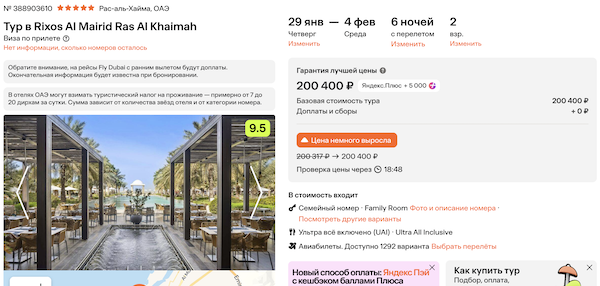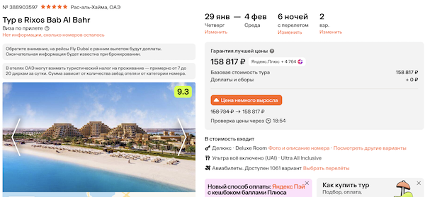 Rixos Bab Al Bahr 79.400 рублей за человека (158.800 рублей за двоих)