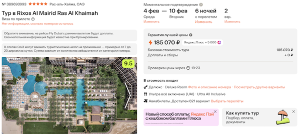 Rixos Al Mairid Ras Al Khaimah 92.500 рублей за человека (185.100 рублей за двоих)