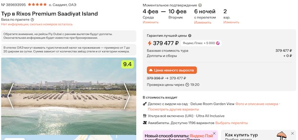 Rixos Premium Saadiyat Island 189.700 рублей за человека (379.500 рублей за двоих)