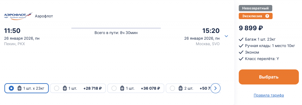 Аэрофлот: из Москвы в Пекин на выходные 18.100 рублей туда-обратно.