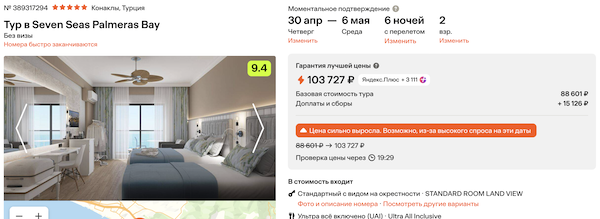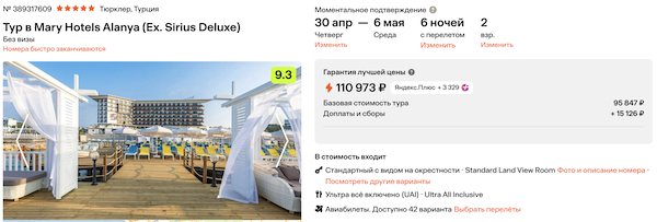 Стоимость в примерах указана за одного человека при условии поездки вдвоем, стоимость туров для одного человека можно посмотреть здесь или на страницах отелей.