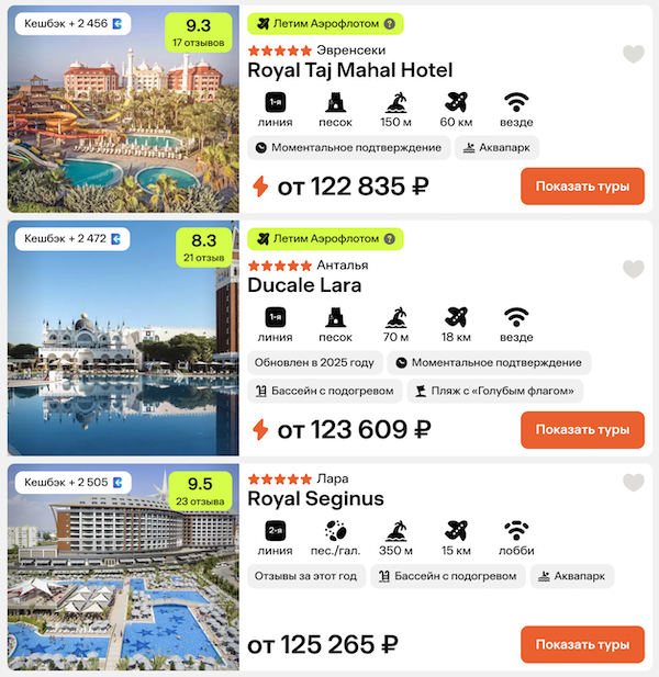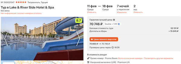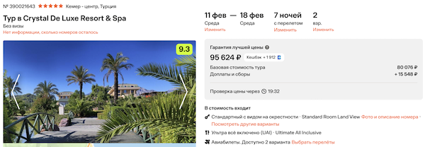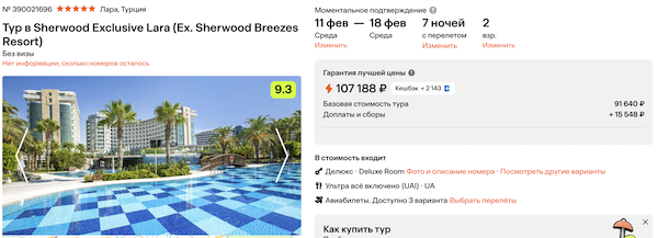 Стоимость в примерах указана за одного человека при условии поездки вдвоем, стоимость туров для одного человека можно посмотреть здесь или на страницах отелей.