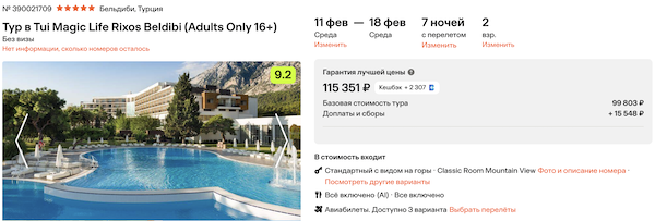 Tui Magic Life Rixos Beldibi 57.700 рублей за человека (115.400 рублей за двоих)