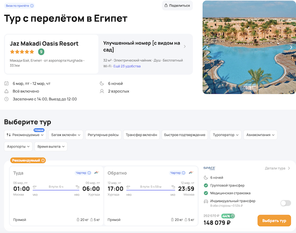 Jaz Makadi Oasis Resort 74.000 рублей за человека (148.100 рублей за двоих)