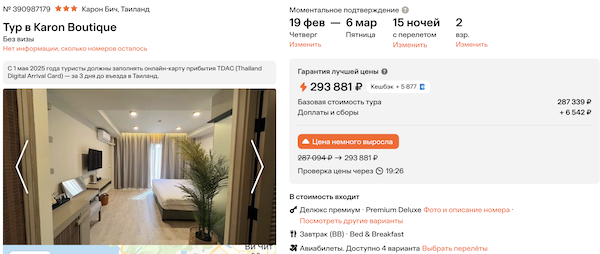 Две недели на Пхукете: горящие туры из Москвы от 95.300 рублей за человека.