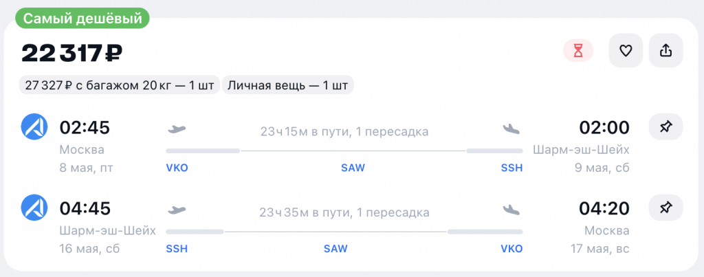Москва — Шарм-эш-Шейх — Москва