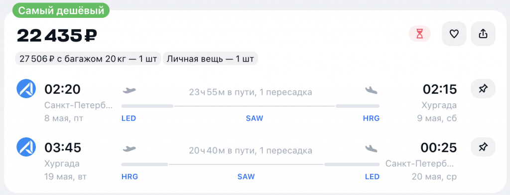 Санкт-Петербург — Хургада — Санкт-Петербург