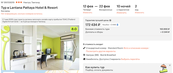 Lantana Pattaya Hotel & Resort 3* с завтраками 86.200 рублей за человека (172.400 рублей за двоих)