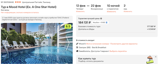 Туры из Москвы в Паттайю от 86.200 рублей за человека.
