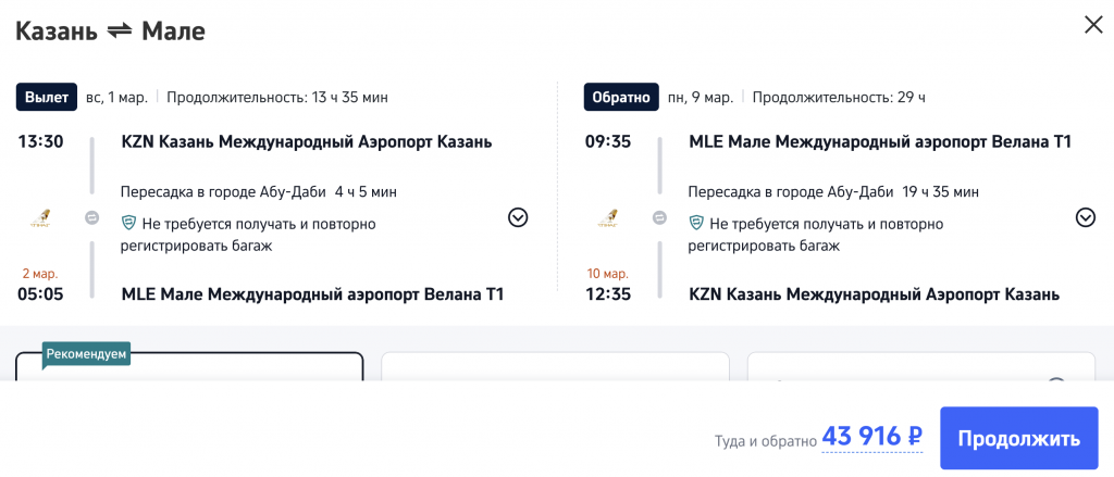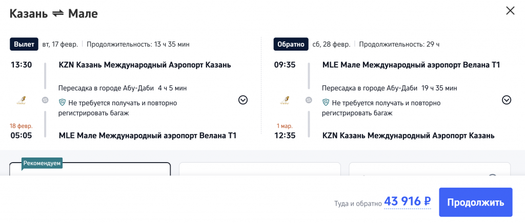Из Казани на Мальдивы в феврале-марте от 43.900 рублей туда-обратно.