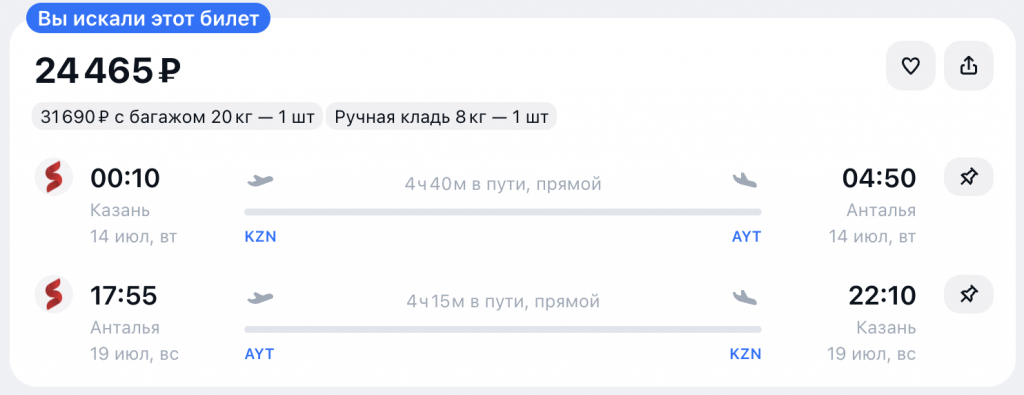 В Турцию летом: прямые рейсы из Казани в Анталью 24.400 рублей туда-обратно.