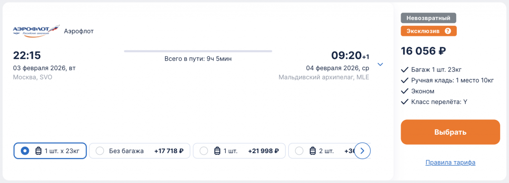 Горящие билеты на прямые рейсы Аэрофлота из Москвы на Мальдивы 46.800 рублей туда-обратно.