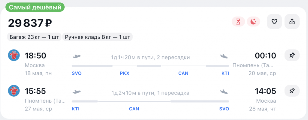 Из Москвы в Камбоджу в мае от 29.800 рублей туда-обратно.