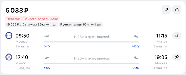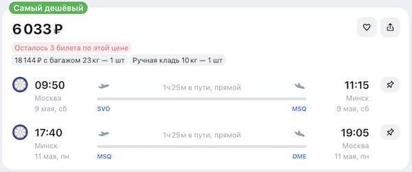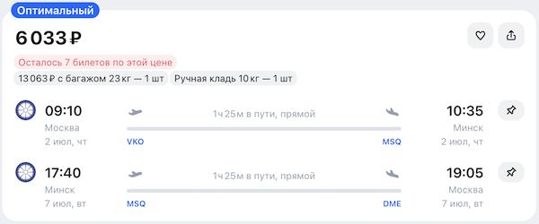 Как забронировать: перейдите по ссылкам в примерах или выберите другие даты на авиасейлс.