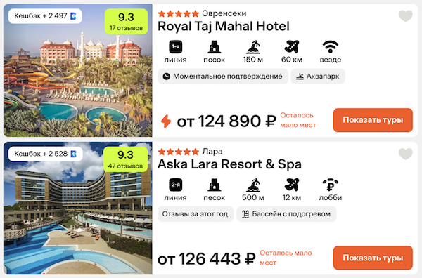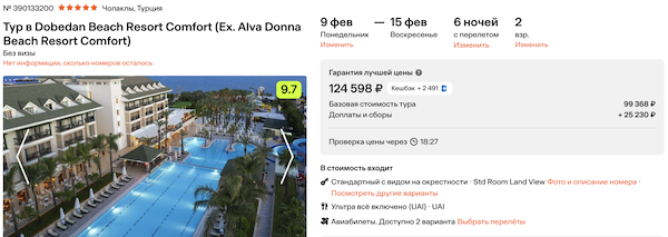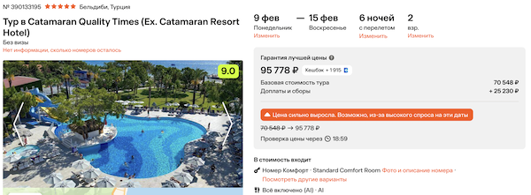 Стоимость в примерах указана за одного человека при условии поездки вдвоем, стоимость туров для одного человека можно посмотреть здесь или на страницах отелей.