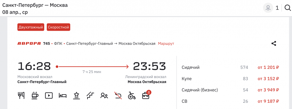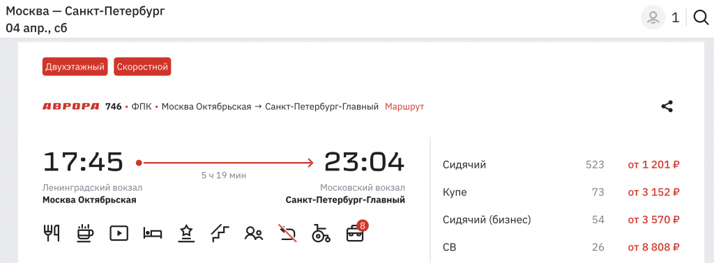 Стоимость проезда в Невском экспрессе от 960 рублей, в Авроре от 1.200 рублей.