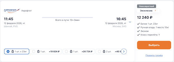 Прямые рейсы Аэрофлота из Москвы в Шанхай 12.200 рублей в каждую сторону.