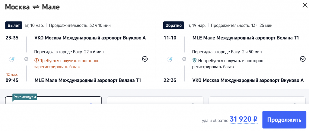 Из Москвы и Санкт-Петербурга на Мальдивы в марте 31.900 рублей туда-обратно.