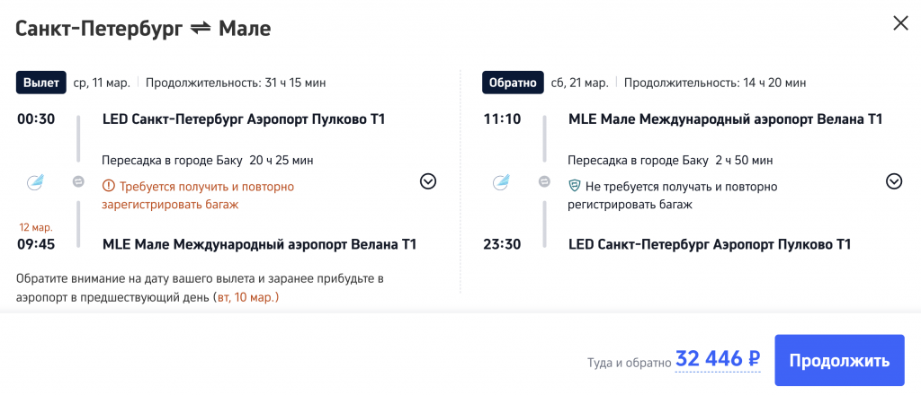 На Мальдивы в марте 31 900 рублей