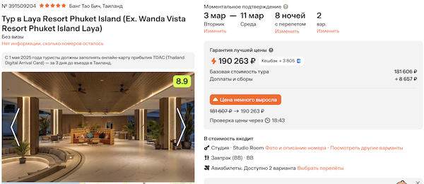 — прямой перелет на Пхукет и обратно, авиакомпания Azur Air;