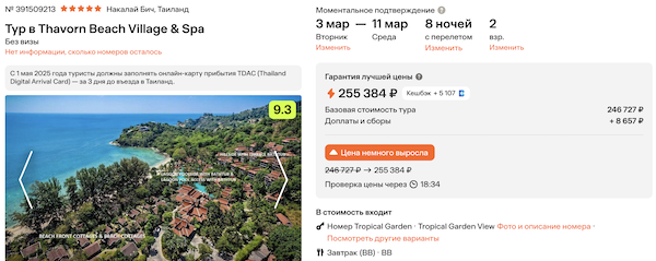 Thavorn Beach Village & Spa 5* с завтраками 127.700 рублей за человека (255.400 рублей за двоих)