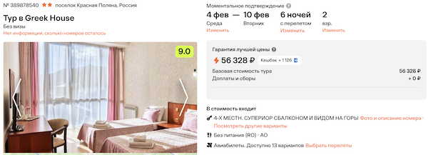 Горящие туры из Москвы в Красную Поляну на неделю от 28.100 рублей за человека.