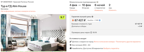 ГД Alm House 33.700 рублей за человека (67.400 рублей за двоих)