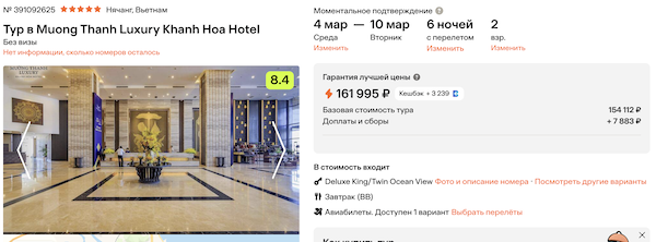 Туры из Москвы во Вьетнам на 8 марта от 81.000 рублей за человека.