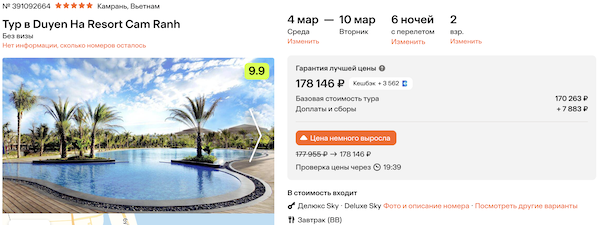 Стоимость в примерах указана за одного человека при условии поездки вдвоем. Стоимость туров для 1 человека можно посмотреть здесь или на странице отелей, изменив количество туристов.