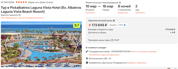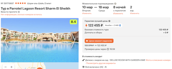Стоимость в примерах указана за одного человека при условии поездки вдвоем, стоимость туров для одного человека можно посмотреть здесь или на страницах отелей.