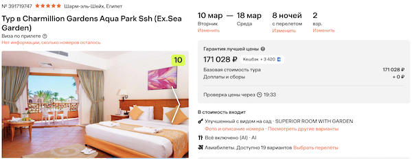 Charmillion Gardens Aqua Park Ssh 5* 85.500 рублей за человека (171.000 рублей за двоих)