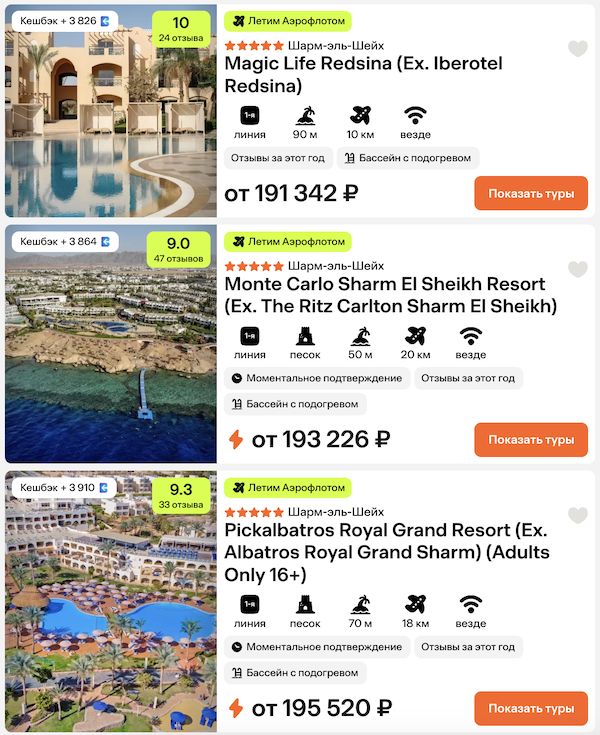 — прямой перелет в Шарм-эш-Шейх и обратно, Аэрофлот;