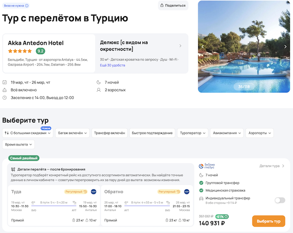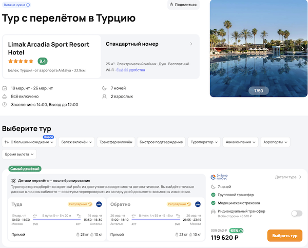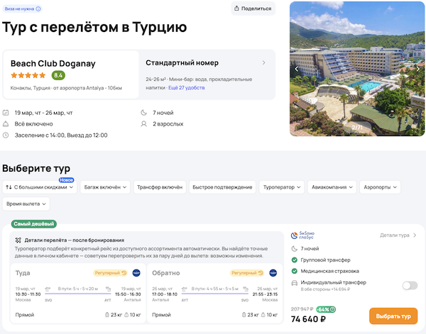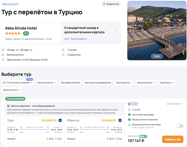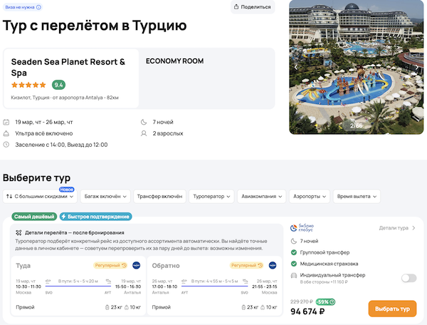 Стоимость в примерах указана за одного человека при условии поездки вдвоем, стоимость туров для одного человека можно посмотреть здесь или на страницах отелей.