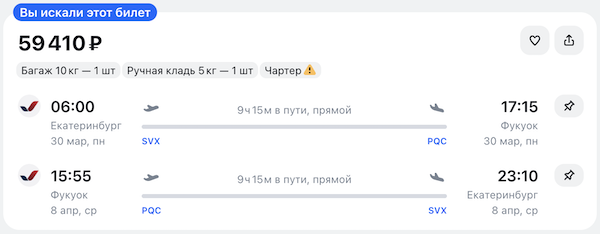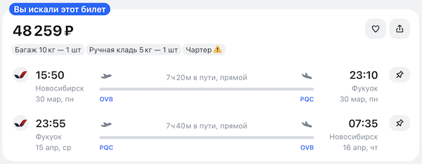 Горящие билеты на прямые чартерные рейсы на Фукуок из Новосибирска, Москвы и Екатеринбурга от 48.200 рублей туда-обратно.