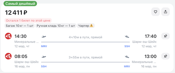 Из Минеральных Вод в Шарм-эш-Шейх с 12 по 16 марта или с 12 по 19 марта