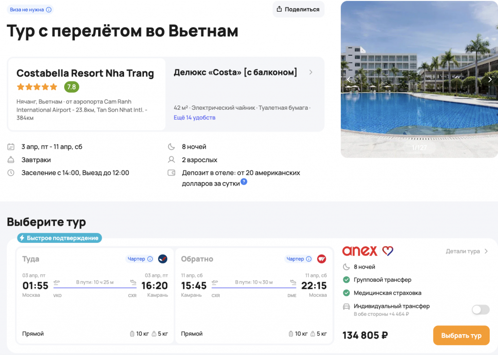— прямой перелет в Нячанг и обратно, авиакомпания AzurAir/RedWings;