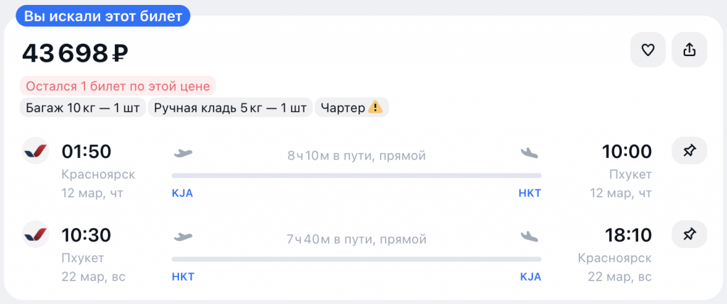 Прямые чартерные рейсы из Красноярска на Фукуок или Пхукет от 43.300 рублей туда-обратно.