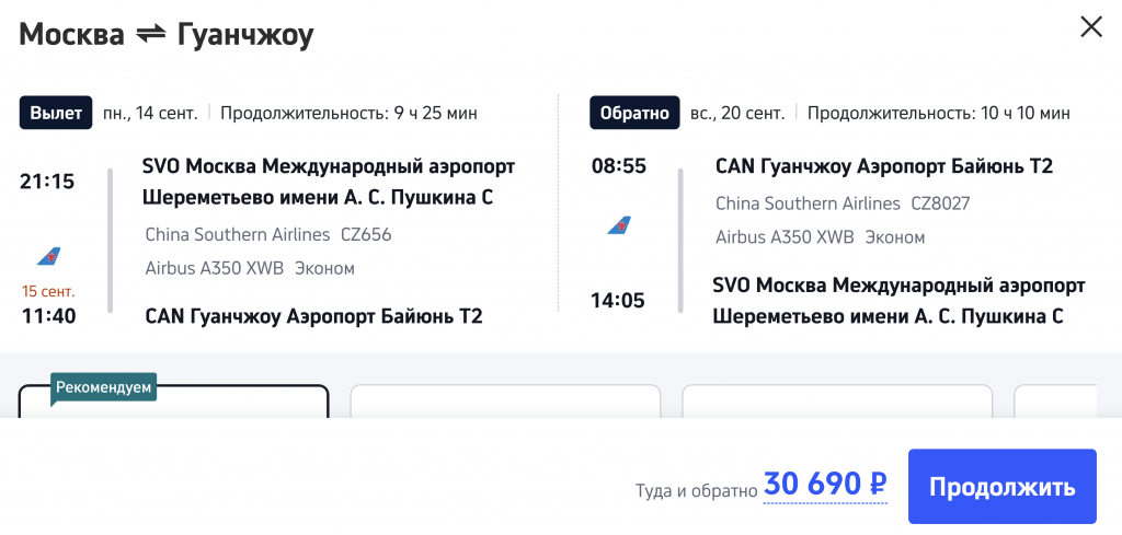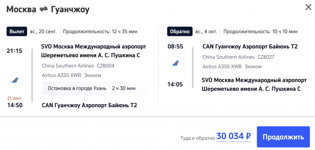 В Гуанчжоу осенью: прямые рейсы из Москвы от 30.000 рублей туда-обратно.