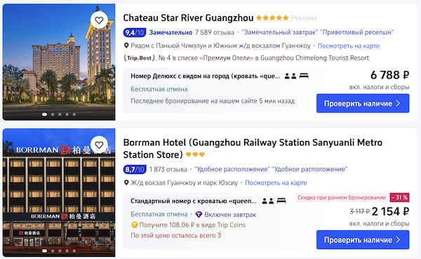 Отели с оплатой российской картой на трип.ком