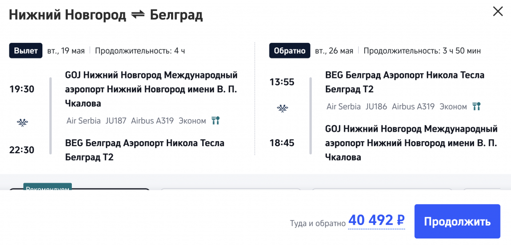 Прямые рейсы из Нижнего Новгорода в Сербию от 40.400 рублей туда-обратно.
