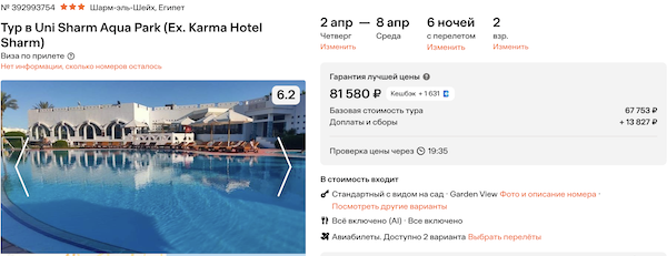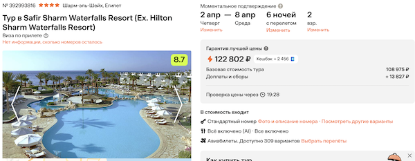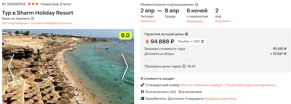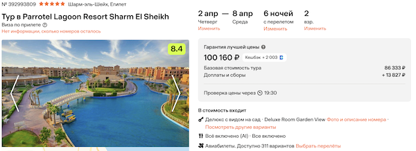 Стоимость в примерах указана за одного человека при условии поездки вдвоем, стоимость туров для одного человека можно посмотреть здесь или на страницах отелей.