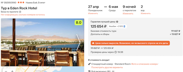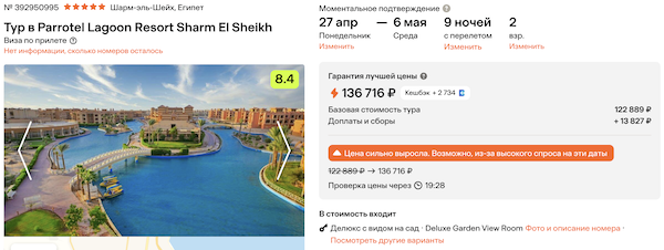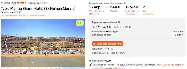 — прямой перелет в Шарм-эш-Шейх и обратно, авиакомпания Red Sea;