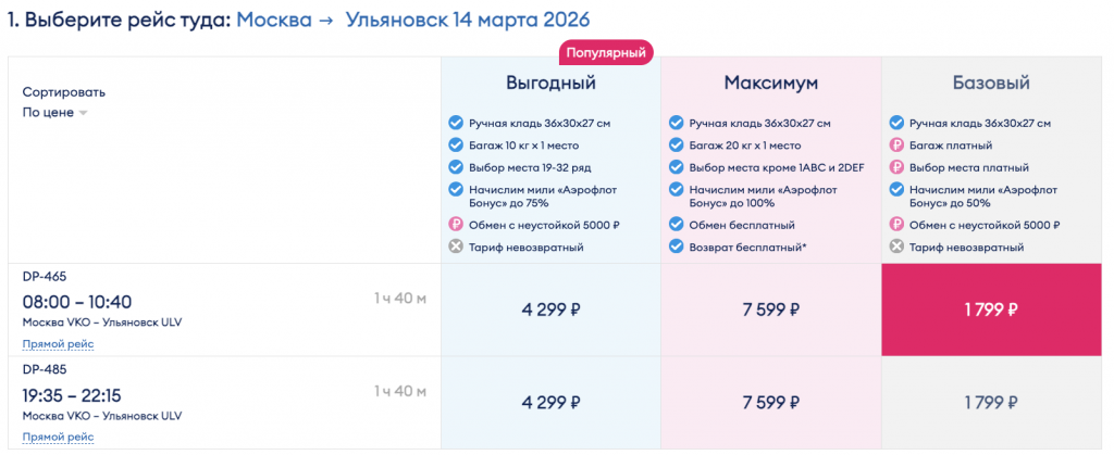 Как забронировать: на сайте Победы. По минимальной цене вылеты из Москвы 14 и 15 марта, из Ульяновска 14 и 17 марта.