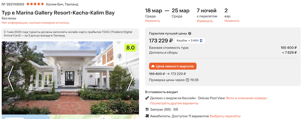 Marina Gallery Resort-Kacha-Kalim Bay с завтраками 86.600 рублей за человека (173.200 рублей за двоих)