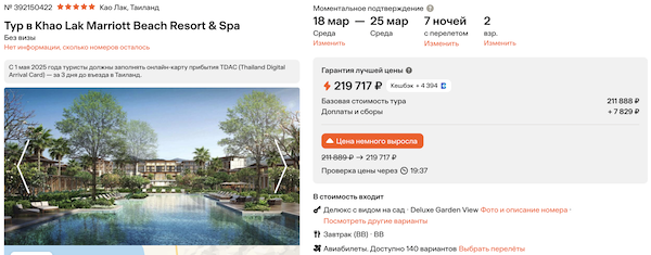 Khao Lak Marriott Beach Resort & Spa с завтраками 109.800 рублей за человека (219.700 рублей за двоих)